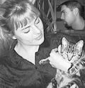 Det skall nu raddas upp v�nner, adresser och bilder och vad det �r f�r filurer...... Anette med v�r katt Signe (lagom fotointresserad) och jag. Nettan kom precis in p� sjuksk�terska i Kalmar. |